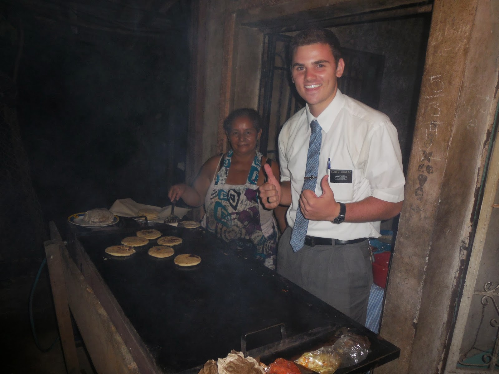 So, Mom, I just remembered what you said about me having to write longer emails to you because now I've got the AlphaSmart, so I'll try to give you a little run down of how the weeks going so far. Yesterday was my Birthday and it was a pretty good day. I just felt really grateful for the awesome friends and family that I have at home, as well as on the mission. I was happy to be able to be a missionary on my birthday! We had zone and district mtgs and it went good, my district is working really good right now and mostly all of the baptisms and dates we have in the zone are from my district, so I'm pretty proud of that! Our plans kind of fell through later in the day due to a pretty hard rain storm so that was a real bummer. But it was a good day! I also ate a pupusa loca for dinner. Its this huge pupusa that has like everything in it. It was really good, but I had no idea what exactly I was eating. I'll put some pictures of it. So today is friday, and it was a crazy day. I had to go to San Salvador to renew my residence card thing. It was a fun trip cuz I got to go with all of my buddies from the MTC. About a year ago we all made the same trip to do the same thing, but this time we knew what was going on and understood what the people were saying haha. We had to drive a ways into the city and we were all in awe seeing big buildings, houses, and actual restaurants for the first time in awhile. Crazy how much we have changed. We talked our bus driver into taking us to Wendys for lunch. It was the first time I had gone into a Wendys and sat down to eat in over a year. It was so good! I was also lucky enough to sneak a few peeks at a Little League World Series game that was playing on TV. The whole thing was a really weird experience, eating wendys and seeing baseball. But it was fun! So we rode back to the mission office in the mission bus, then we have to take a public bus back to Atiquizaya. The bus that goes to Atiqui is the 210. So instead of the 310 to Yuma, we have the 210 to Atiquizaya. Boy, I'll tell ya, the 210 at about 12pm is the most packed bus in the country! You literally have to push and squeeze through people to get on. Haha you guys would die if you saw how many people they can fit into one bus. But somehow we always make it! We then had a a pretty good day and fit in some good lessons. But it was kind of one of those days where you feel like there is no one that wants to talk to you. We came to visit some new people we found the other day and they were sitting outside their house. But as soon as they saw us round the corner, they jumped up and ran inside and closed the door. We then knocked on the door and no one answered. Haha it was pretty funny. The joy of being a missionary.